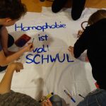 1/2 l gekochtes Wasser in die Schüssel gießen und danach eine Tube Lebensmittelfarbe dazu geben