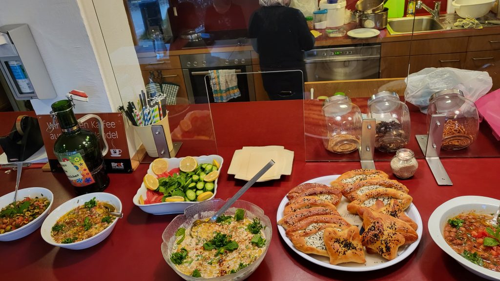 Am 10. November am Freitag treffen wir uns wie jeden 2. Freitag im Monat, zum internationalen Frühstück im Café Salute Matthias Claudius. Liebe Eltern und Kinder von 9.00 bis 11.00 Uhr gibt es ein arabisches traditionelles Frühstück von Ayouch und Hannan. Ein typisch syrisches Frühstück ist überwiegend vegetarisch Olivenöl und Zaatar, arabisches Fladenbrot und viele selbstgemachte Leckereien.