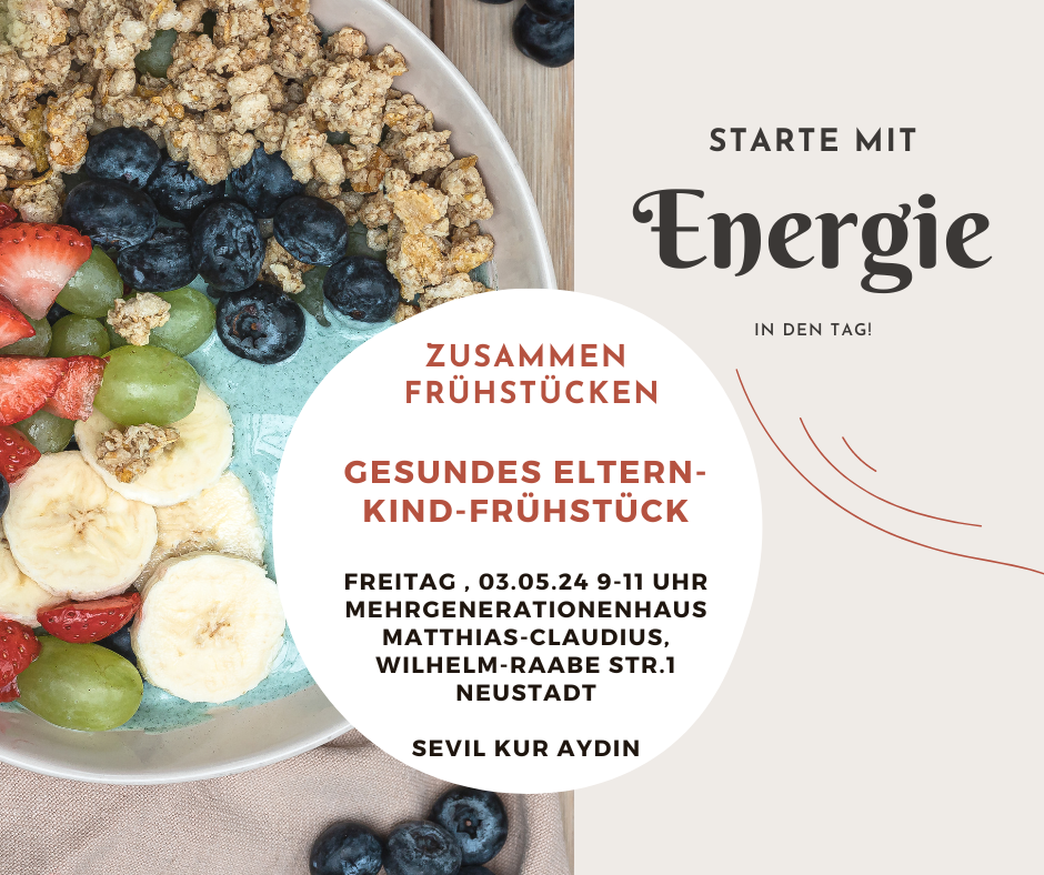 Jeden ersten Freitag im Monat treffen sich Familien zum gemeinsamen gesunden Frühstück. Alle die gerne Müsli mit Obst und verschiedenen Nüssen und anderen leckeren Zutaten essen sind herzlich willkommen.