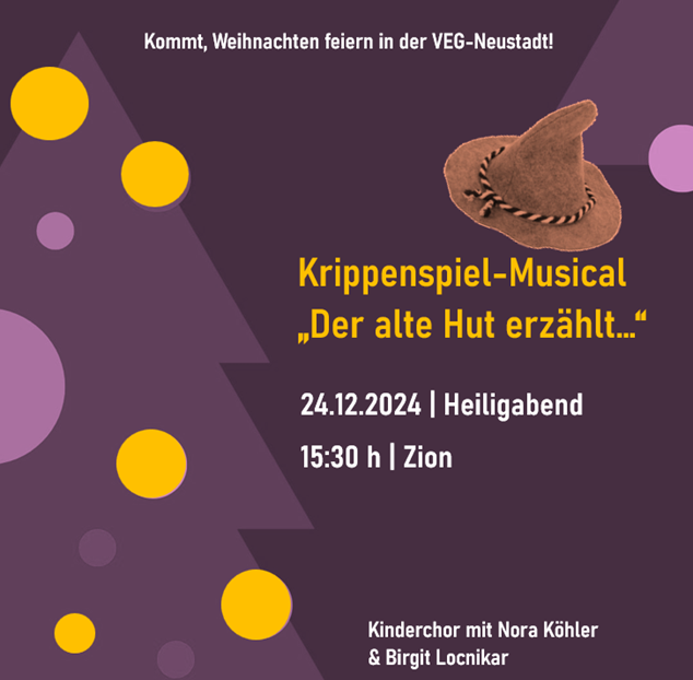 Zwei Weihnachtsgottesdienste mit Krippenspielen – gut geeignet für Familien mit Kindern ( 0-12 J.) stehen zur Auswahl: