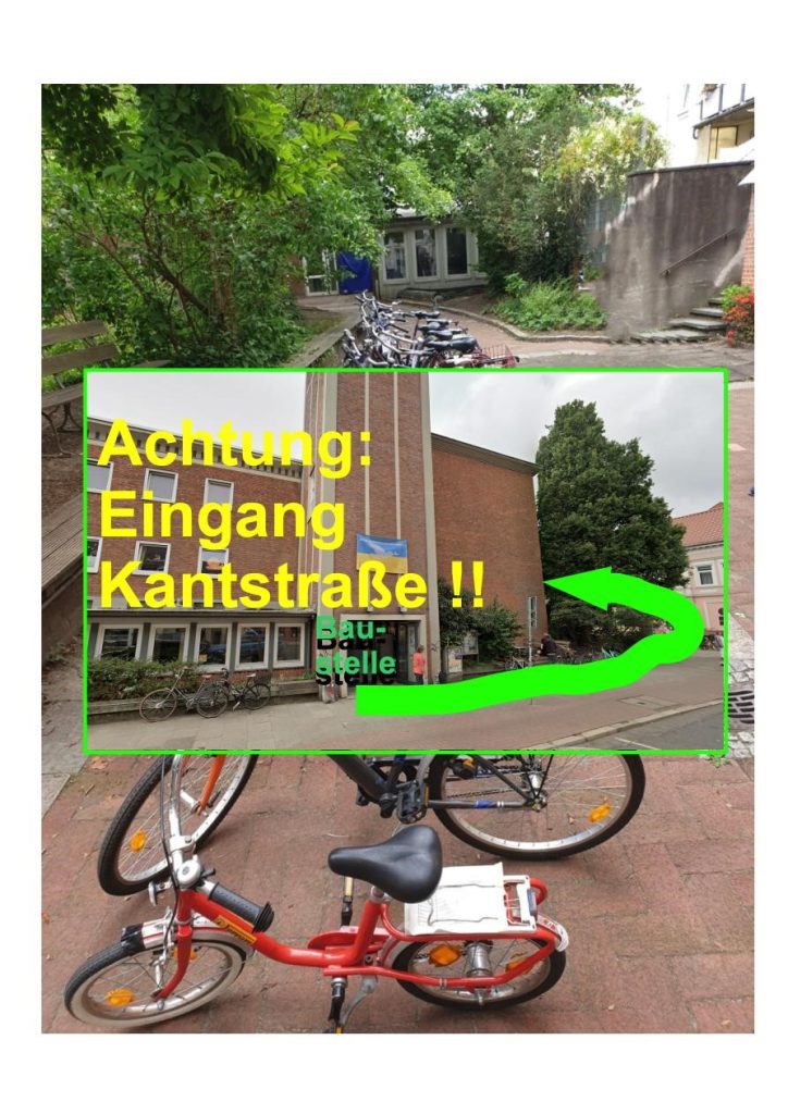 Ab Juni 2025 wird das Gemeindezentrum Zion umgebaut. Deshalb ist der Haupteingang geschlossen. Wir können aber weiterarbeiten. Man erreicht uns jetzt über den Seiteneingang in der Kantstr. . Wir hängen dort kleine Wegweisungen mit Pfeilen aus. Wenn der Weg durchs Treppenhaus unklar ist, bitte die Kontaktnummer (s.u.) anrufen. Wir kommen dann und holen Sie ab.